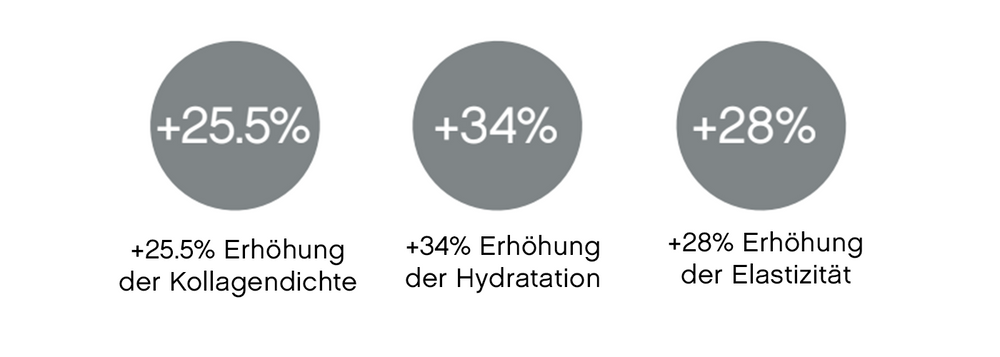 Es ist ein klinisch getestetes, patentiertes System mit 13 aktiven Wirkstoffen, das von innen wirkt – für festere, klarere, hydratisierte Haut – nicht nur im Gesicht, sondern am ganzen Körper.